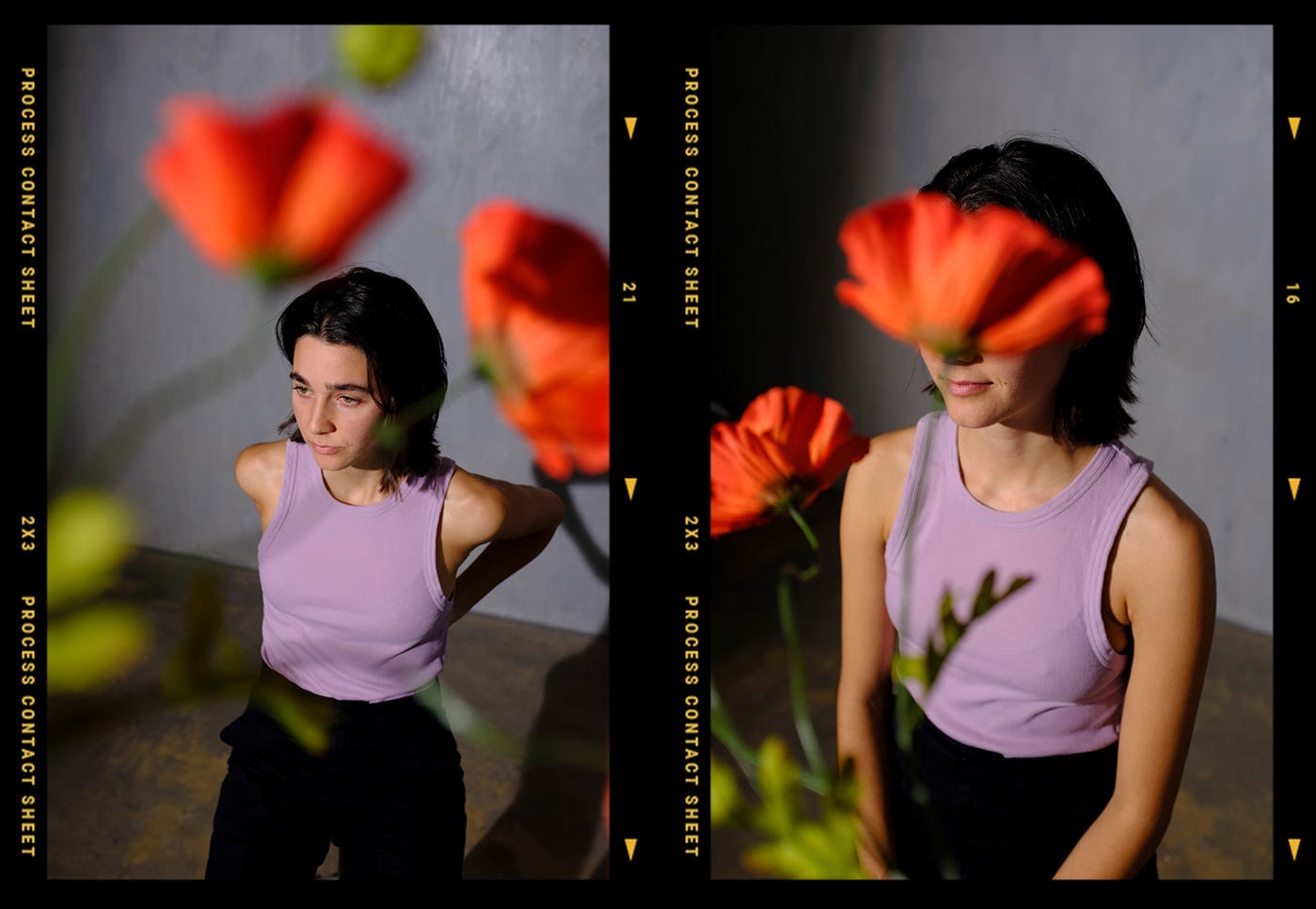 Next up we traveled a bit further down into the artistic realm with some experimental portraits, exploring the interplay of flowers, shadows, and colors. These shots were crafted around the idea that they could be used as portraits alongside future features and interviews teasing potential audiences with glimpses of Lara's upcoming tour.