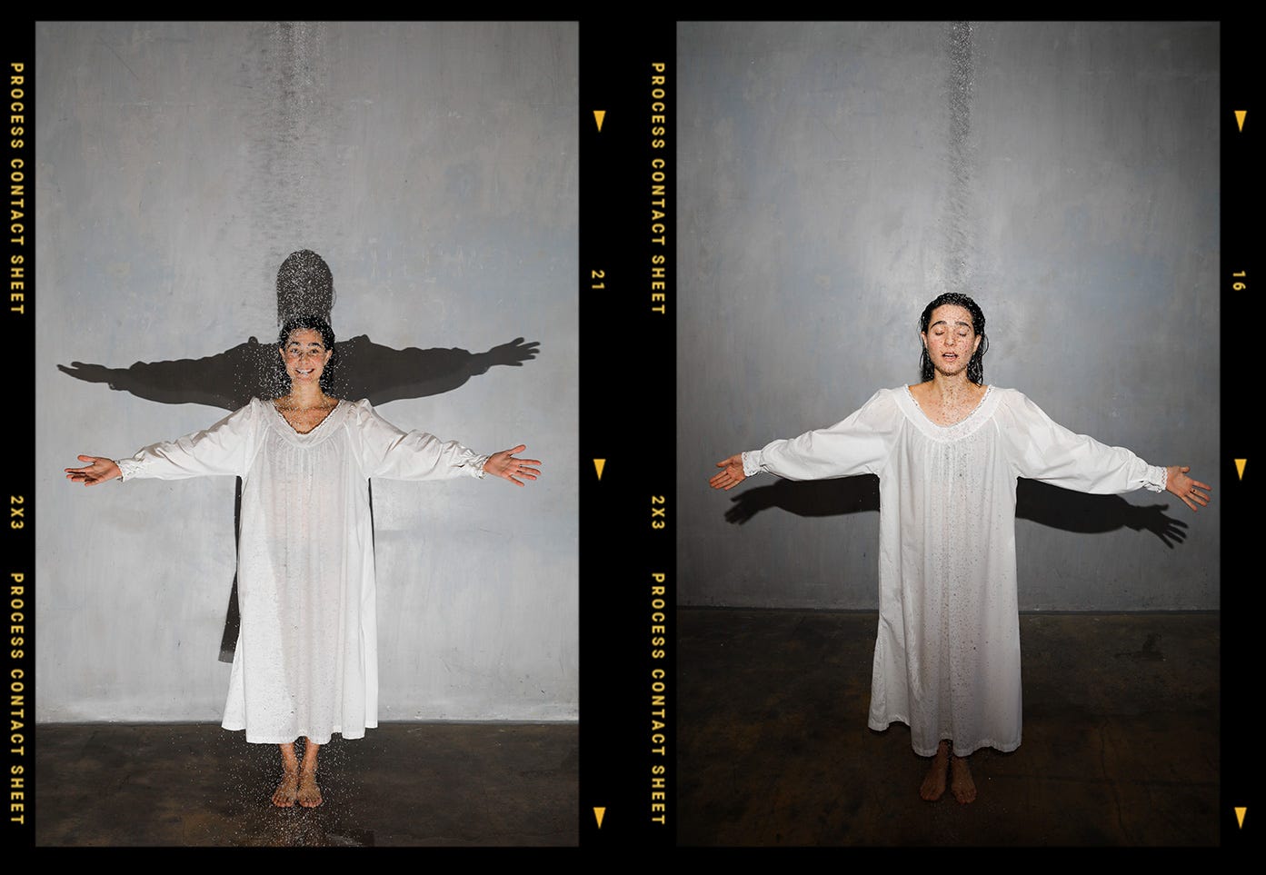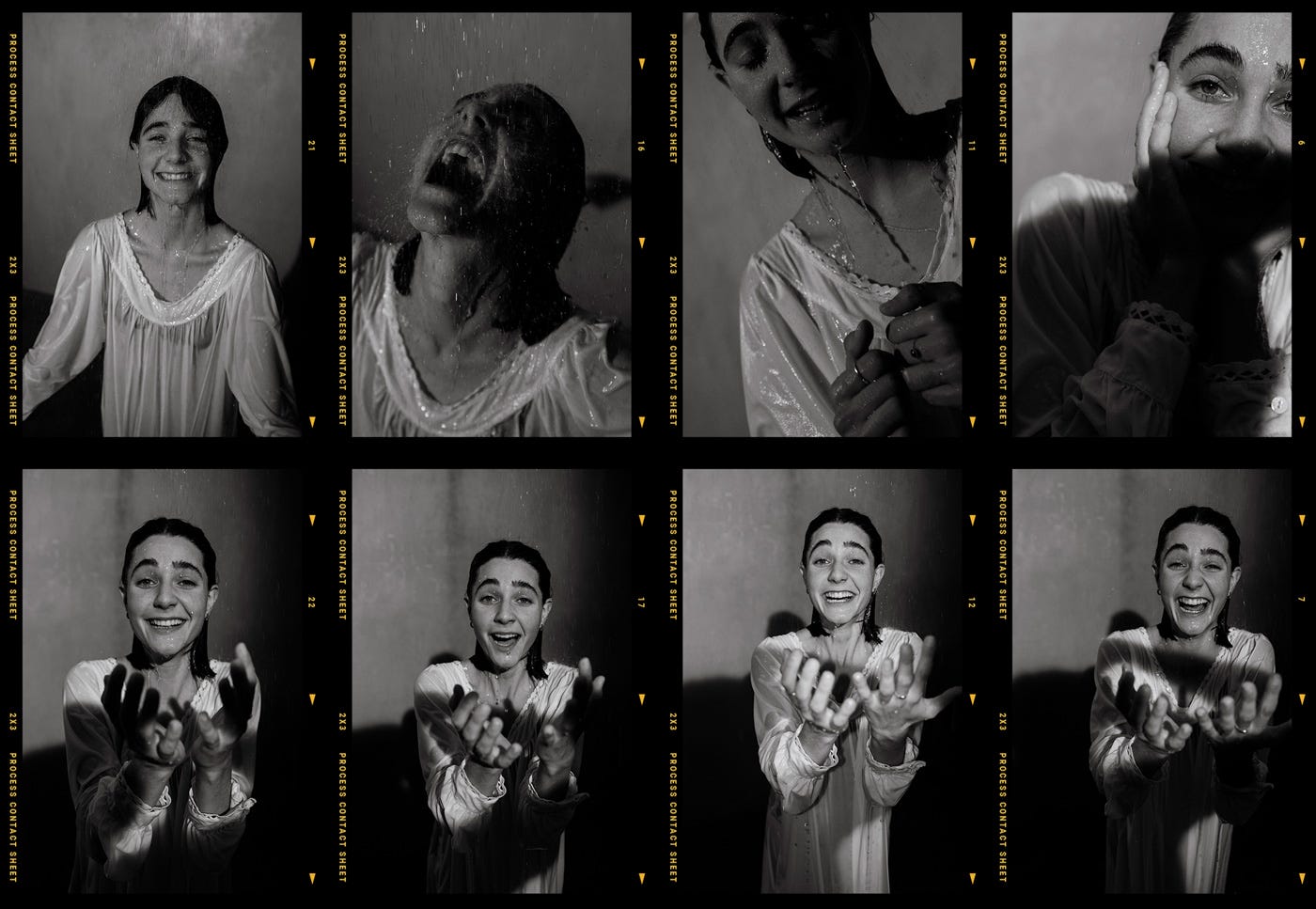 Next up, we focused on closeup portraits. The downpour of water added a subtle, and sometimes not so subtle, layer connecting to the show's concept and title.